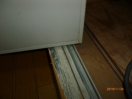 上部のレールとかも新しくしなければいけませんので、現状のレールの寸法も測っていきます。