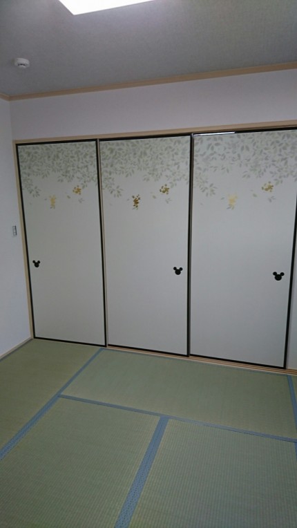 松原市 ミッキーマウスの襖紙を使った 襖を製作。収めてきました。|
