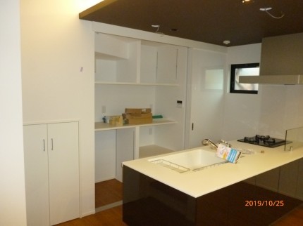 西宮市 キッチンの背面に3枚引き違い戸を制作、取り付けしてきました。