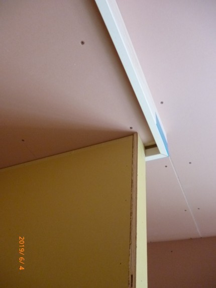 天井の幕板の隙間も測ります。右手前の引き戸が入るか確認します。引き戸の厚みが余裕で入りそうです。