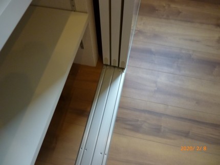 建具の左の床と天井部にゴムの戸当たりを取付して完成です。