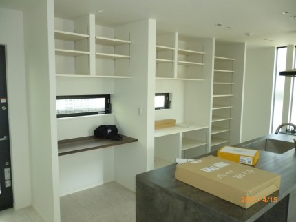 このコーナーには食品庫、冷蔵庫、家事カウンター、勝手口の入り口も隠してしまうような引き違い戸になります。
