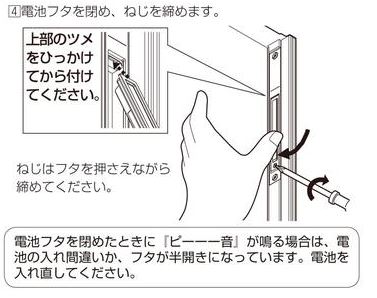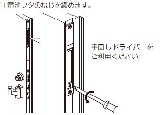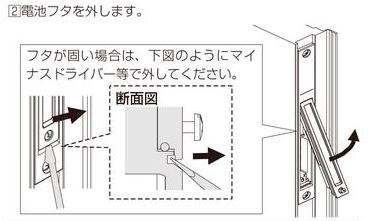 ドアの戸先の図の位置の所に電池のフタがあります。
