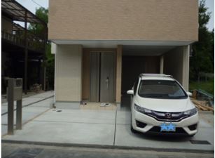 車の出し入れに邪魔にならない様に柱を敷地隅で建てて屋根を取付けています。また、オプションでさいどパネルを取付けているので、お隣の方の視線を気にしなくて済みます。