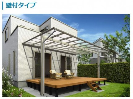 大型テラス屋根エルフージュには他にも独立タイプや、梁延長ユニットタイプ(最大8mまで梁を延長できる)もあります。