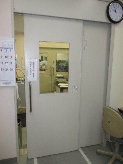 ご依頼のあった引戸は、学校や病院などでよく見かける、スチール製の出入り口引戸でした。