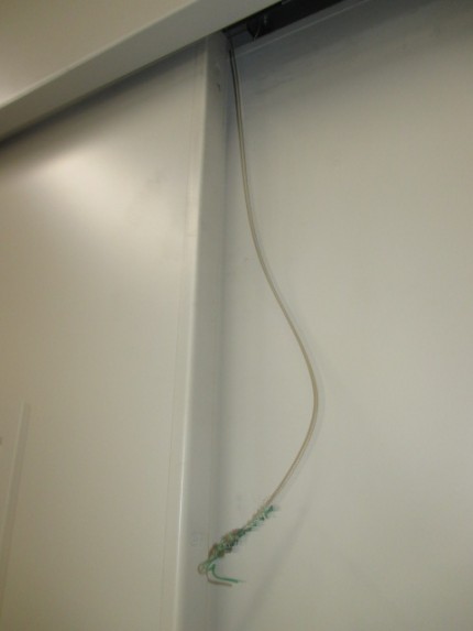 お客様が仰る通り、スチール引戸のワイヤーが切れて垂れ下がっている状態になっています。