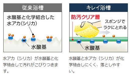 浴槽をキレイに保つ防汚クリア層で汚れをラクにスポンジで落とせます。