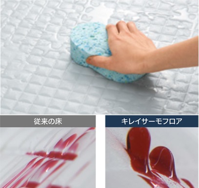 LIXIL【アライズ】キレイサーモフロアはお掃除がしやすく、冷たさを感じにくくされています。