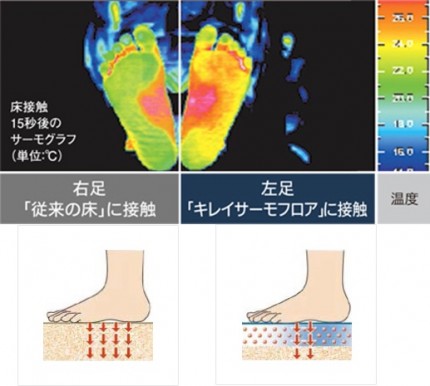 床に足が触れた時、冷たさを感じないように、 独自の断熱層によって足裏から逃げる熱を