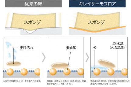 髪の毛や体を洗って皮脂汚れが発生しても、 皮脂汚れをはじく成分が有るので床に