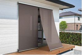 西日対策でもっと効果を上げる為にぜひ、おすすめしたいのは、洋風すだれのシェードです。YKK apのアウターシェーどを窓の外に取付、窓の内側にはプラマードUを取付て頂きますと益々効果はUPします。