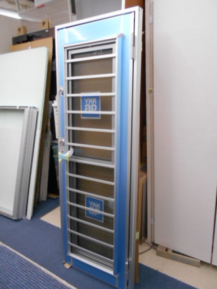 お話を聞くと昔に、泥棒に入られたそうなので、防犯面を考え、横格子付のYKK ap【勝手口ドア】へのお取替えをご提案しました。