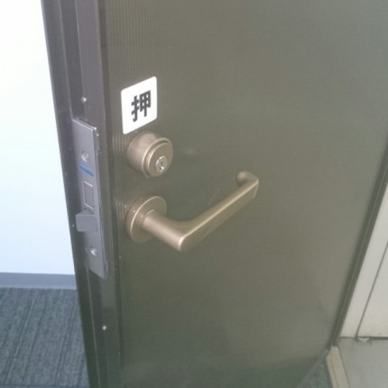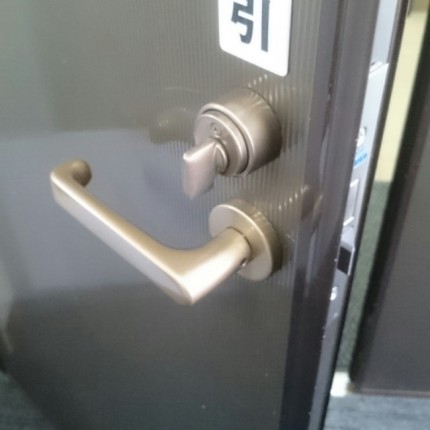 今回ご紹介させていただくのは、吹田市の某会社事務所の入り口扉のレバーハンドルを取り替えさせていただきました。