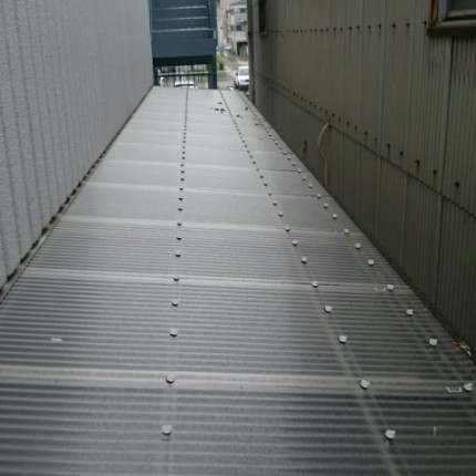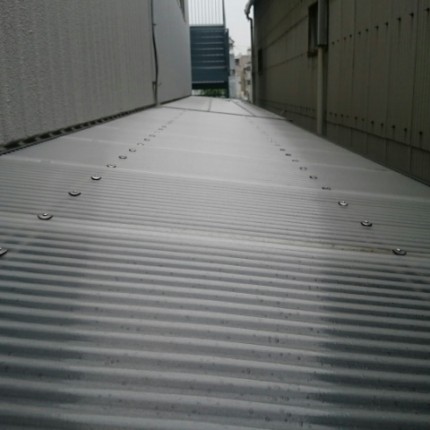 本日ご紹介させていただくのは、吹田市のオフィス倉庫にて、外壁塗装に伴い足場設置の障害になるため、一時的に波板を撤去しに行きました。