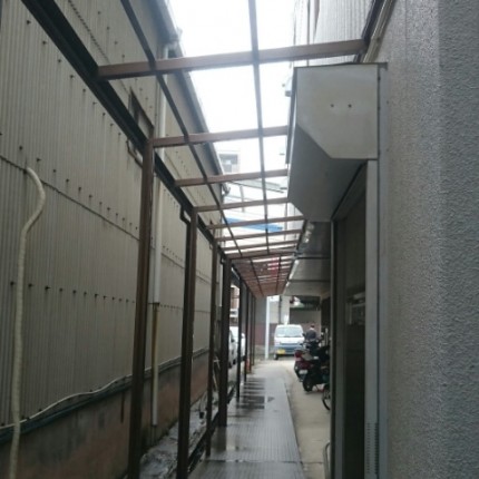 外壁工事に伴い、自転車置き場の屋根材を撤去してきました。 大阪府 吹田市