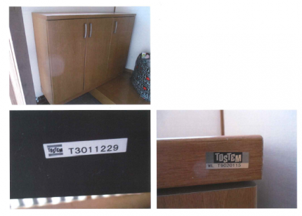 現場下見の写真より ラベルからメーカー様に問い合わせ探してみたところ、WLモダンクラシック(2001年5月~2004年8月)に製造された玄関収納でした。