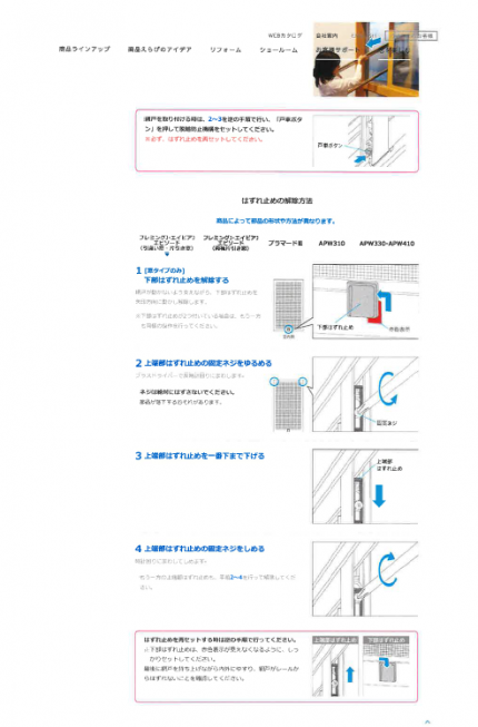 スライド網戸もサッシメーカーにより、違いますのでご家庭の網戸の外し方で外してみてください。