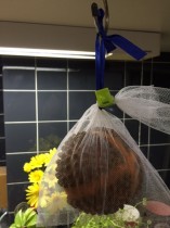 松ぼっくりのように見えるのが、先生が1年前に製作されたものです。オレンジの水分が抜けて軽くなってました。