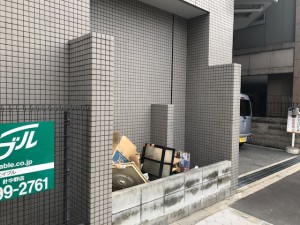 マンションのゴミ置き場。入口扉がなくてゴミが、丸見えで美観面・防犯・防火のご心配されていました。