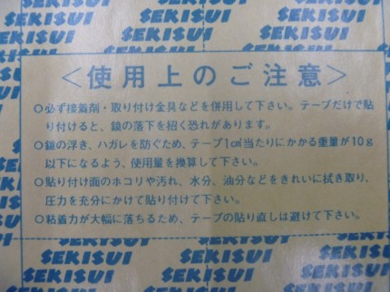 真っ直ぐに貼らなければ・・・鏡に歪みが出ますと見るたびに、気持ち悪くなる事がございますのでご注意くださいませ。