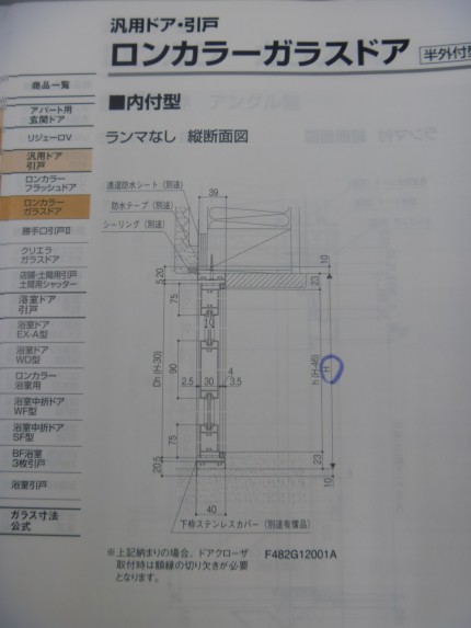 LIXILロンカラーガラスドア 内付型 W500×H1841