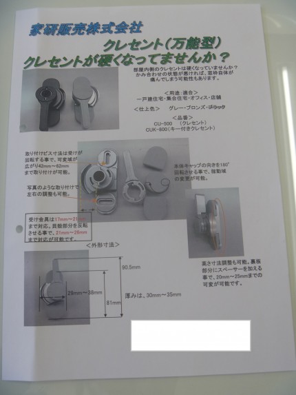 基本的に取替えは、同じ物クレセントが(鍵)がいいんですが・・・