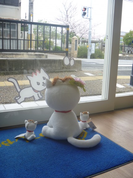 桜満開 マドレーヌちゃんも お外に出たそう。