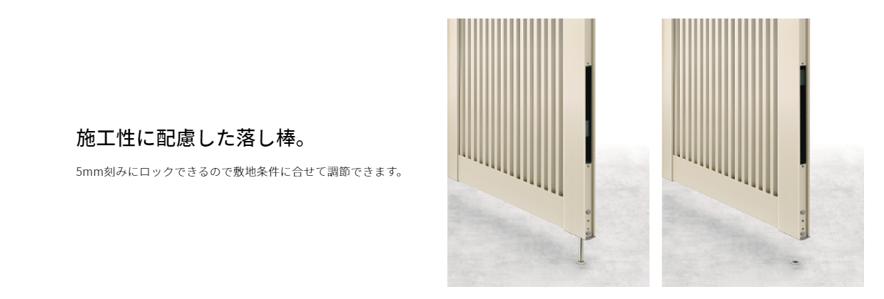 施工に配慮した落し棒。5㎜刻みでロックできますので敷地の条件合わせて調整が出来ます。
