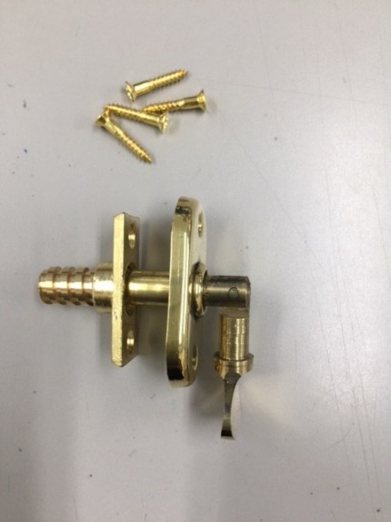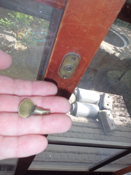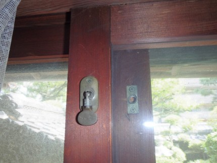 木製建具の窓についている鍵です。ねじ込み式の物になります。昔からこの方法です。シンプルな作りですが、今は町屋カフェなどで木製の窓が使われていたりするとこの様なねじ込み式の鍵を見る事が多いと思います。