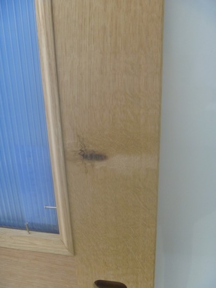 楢(ナラ)の特徴的な虎斑(トラフ)模様入りの材を建具材としてお選びいただきました。