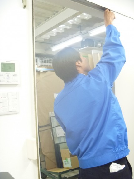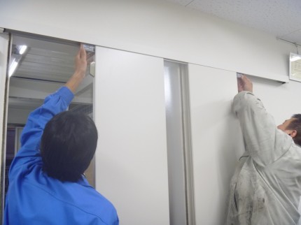 MADOショップ吹田中央店((株)井上昇商店)の事務所 上吊片引戸の調子が悪い・・・出入りの度に、社員みなが「動きがなんか変な感じ・・・」と。