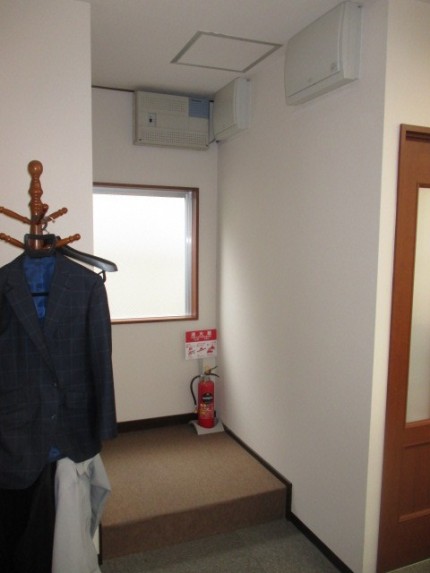 1階階段箇所から冷気が入って来る為、何か防ぐ方法はないですかとご連絡を頂きました。現場にて確認しますと側面右側はブレーカー、階段側に寄せるにも天井に点検口がありました。そして側面の壁も左右で出幅が違い何で間仕切りをするか考えました。