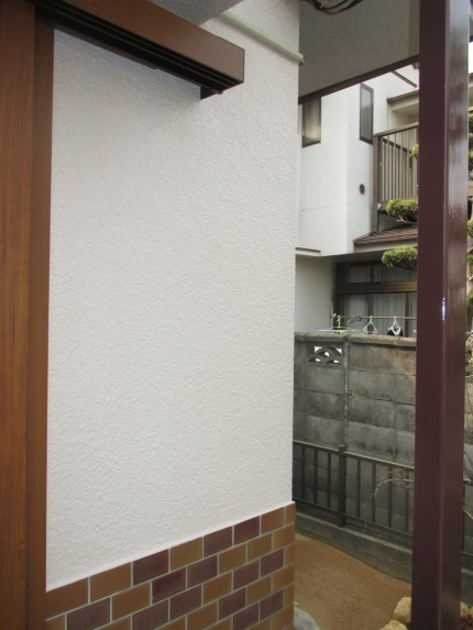 玄関引戸下部と外壁下部は同じタイルで修繕しました。