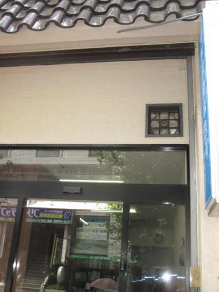 隣で現場調査している時に電動シャッターが動かないと声を掛けて頂きました。スイッチを押しても何も反応が無く、点検口を探すと屋根の中にシャッターが入っていて、屋根を解体しないと修理も出来ない状態でした。そこで既存のシャッターは屋根の中に置いておき、壁沿いに新しい電動シャッターを取付する事をお勧めしました。