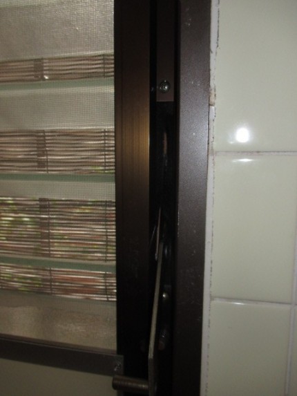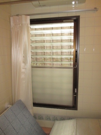 浴室のガラスルーバー窓の事で相談したいとお電話を頂きました。現場にてお話を伺いますと入浴時にガラスルーバー窓のガラスとガラスが重なり合っている箇所とハンドル箇所の隙間から外部の冷気が侵入して寒い、そして何よりも湯船のお湯がすぐ冷めるて困ると言う事でした。