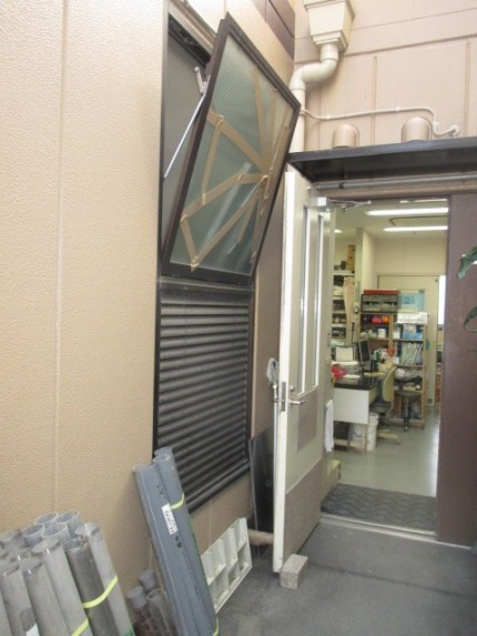 排煙窓ガラス割替・スチールドア戸当たり取付工事に伺いました。大阪府 摂津市