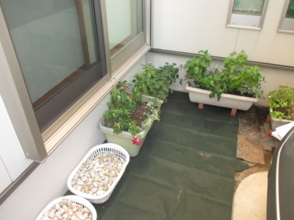 1階掃出し窓の前、駐車スペースにフトンと洗濯物干し場を作成①
