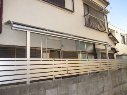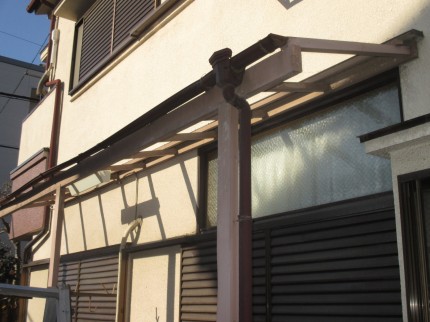 防犯対策のアルミフェンスを取付した後は、老朽化してきた、木製テラス屋根を取外します。