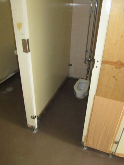 トイレドアの事でお電話を頂きました。現場にて確認しますとトイレが3台有るのですが、左側のドアが無いので、同じようにドアを付けて欲しいと言う事でした。