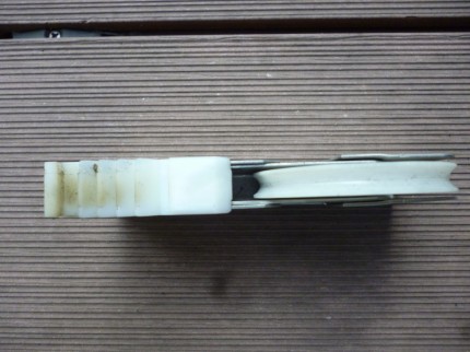 下からの写真です。戸車の大きさや厚み・巾・深さ等正確に計測することが肝心です。