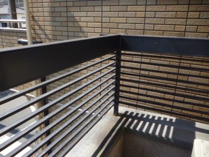 ベランダ手摺取替ご希望先現場調査に伺いました。40年程お住まいのお宅で、スチール製の横格子タイプの手摺でした。格子の継ぎ目等に腐食が目立ち、一部分破損していました。
