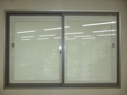 YKKAP製内窓プラマードU にブラインド内蔵複層硝子を取付た例です。硝子と硝子の間にブラインドをはさみ込んでいるので冬暖かく、夏涼しく、冷暖房コストをぐんと節約でき、ブラインドにほこりがたまりませんのでお掃除不要です。