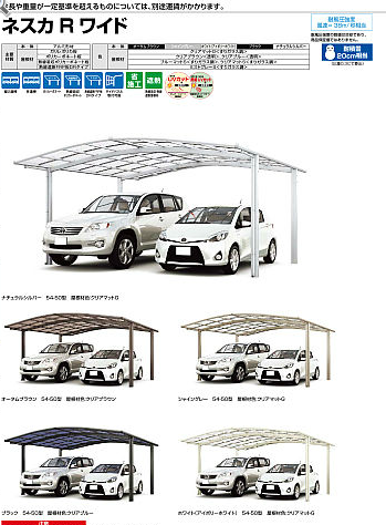LIXIL製カーポートネスカRワイドをおすすめしました。お家に取付られていますサッシと同色の商品がラインナップされていて意匠性もいいです。カーポートをお取付しますと、雨はもちろん夏の強い日差しを和らげ車内外の温度も抑制することで傷みの進行を遅れさせます。