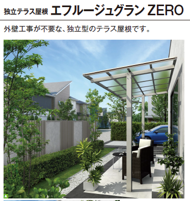 壁を傷つけない独立テラス屋根YKKAP製エフルージュグランZEROのご紹介です。