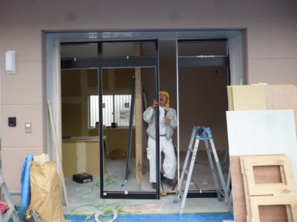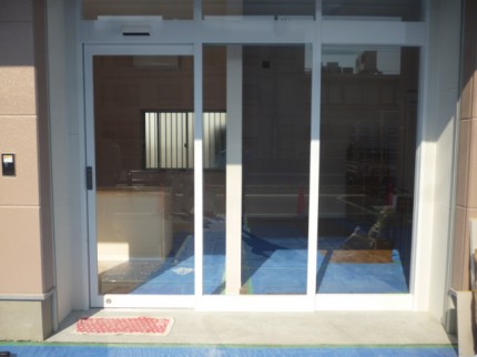 テナント入口、アルミフロント片引き自動ドア取付完了しました。|