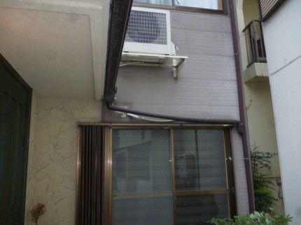 施工前 既存1Fの掃出し窓上部に庇が無く、降雨時には雨粒が直接窓ガラスに当たり、雨音がうるさくなかなか眠れない時があるので、庇を取付てほしいとのご相談でした。