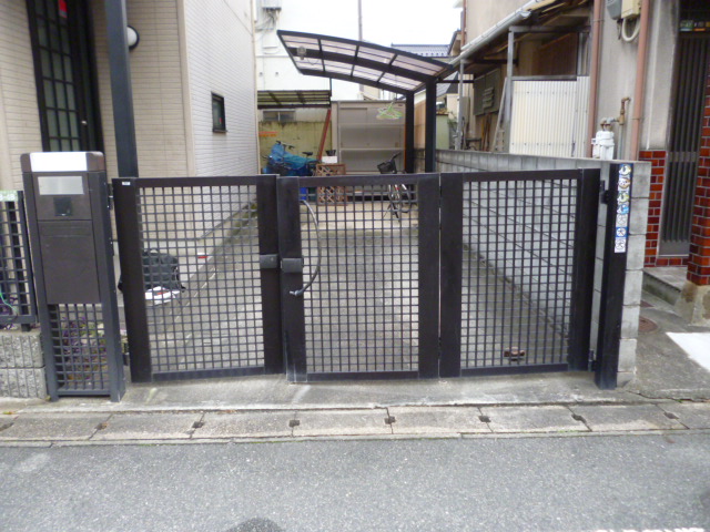 既存、車庫出入口3枚折れ門扉ですが、車の出し入れ時2枚折れ開きが大変扱い難く、また、道路側に開くので自転車等、通行の邪魔になっているとの事でした。今回、既存門扉を撤去し、横引き伸縮ゲートをご提案し、現在、ご検討中です。