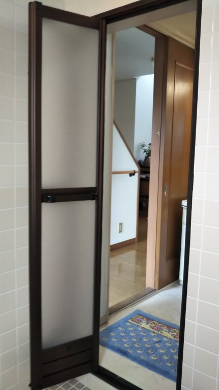 浴室入口ドアの取替工事施工例です。