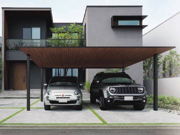 2024年11月に発売されたプレーンルーフ(片側支持・1台用)に新たに2台用・3台用・テラス屋根が追加され、バリエーションが拡大しました。奥行勾配の屋根が生み出す水平ラインが建物と調和、外構全体に一体感を生むデザインが実現!